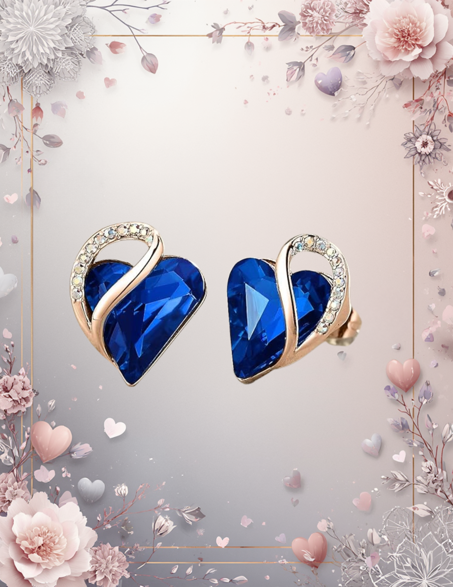 Stone: Sweet Heart Fancy Stone, Cobalt Blue; Flatback Zirconia Rhinestones, Crystal AB Color