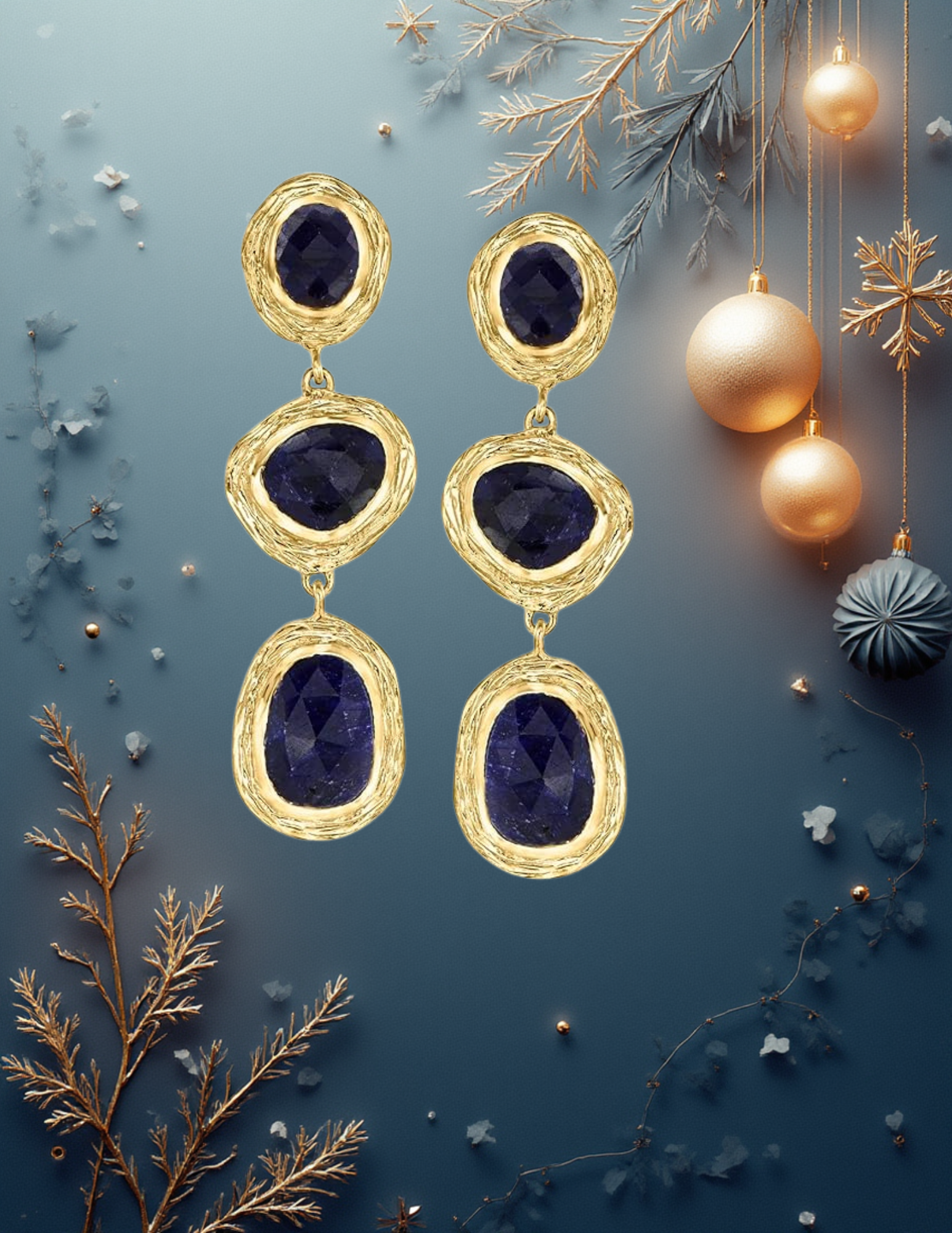 EandChic Sapphire Gold Pendant Earrings